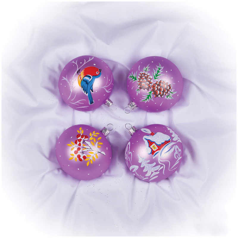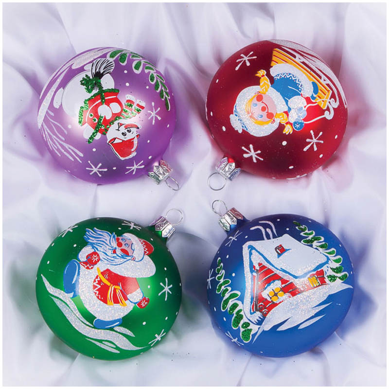 Набор стеклянных шаров "Зимушка-зима" 4шт., 75мм, подарочная коробка