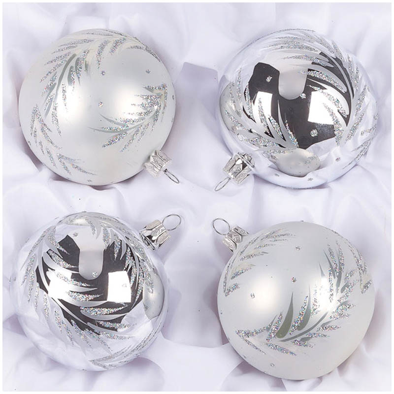 Набор стеклянных шаров "Зимняя ветка" 4шт., 75мм, подарочная коробка