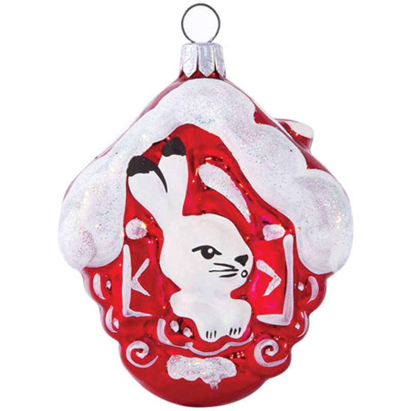 Елочное украшение стеклянное "Домик с зайцем" 7,5см, подарочная упаковка