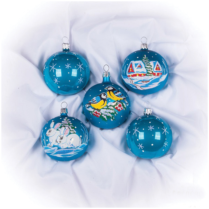 Набор стеклянных шаров "Стужа" 5шт, 60мм, подарочная коробка