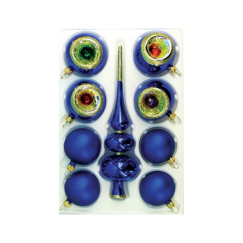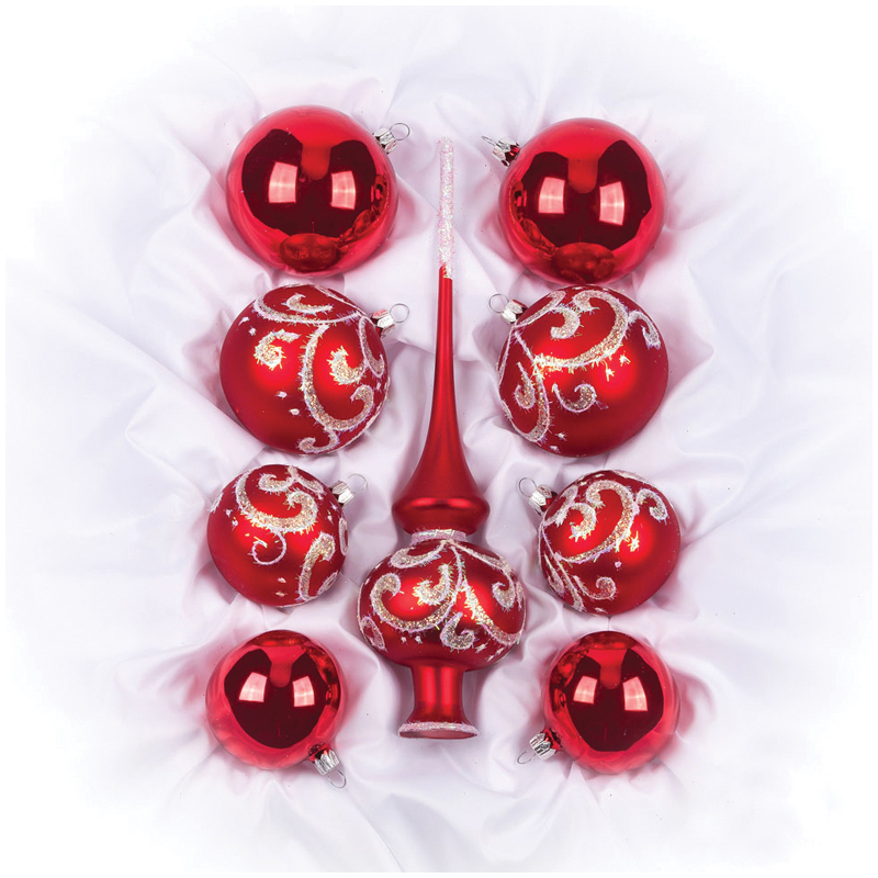Набор стеклянных шаров "Метелица" 4шт*60мм, 4 шт*75мм + верхушка 27,5см, подарочная коробка