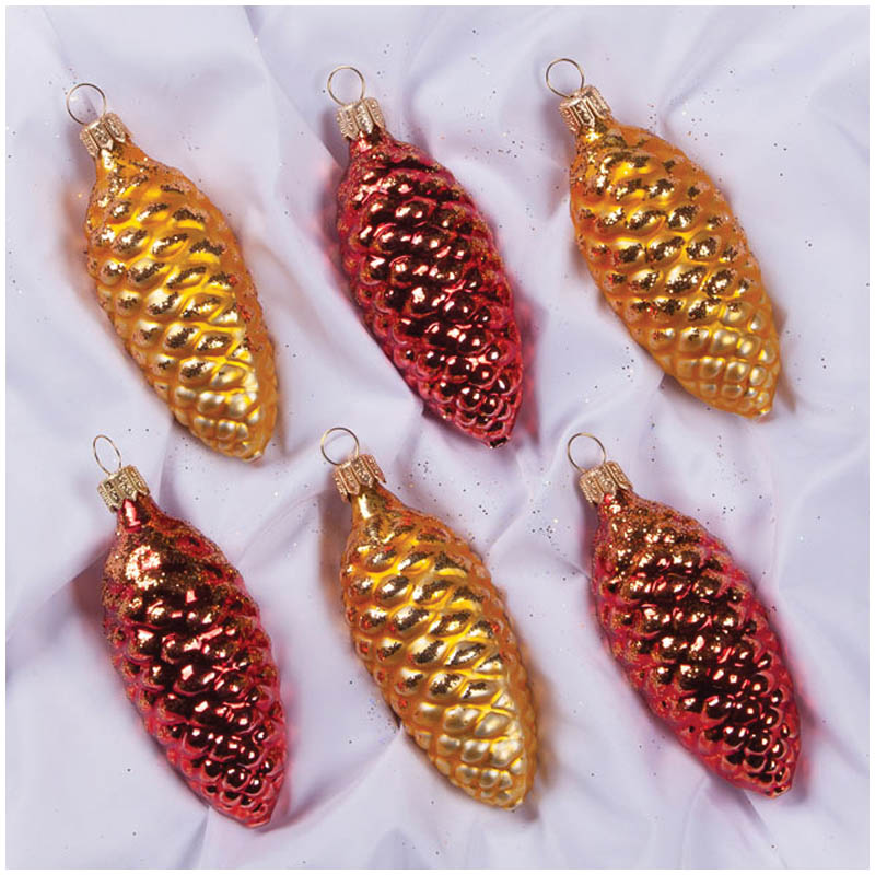 Набор стеклянных елочных украшений "Декоративный" 6 шишек 10см, подарочная коробка