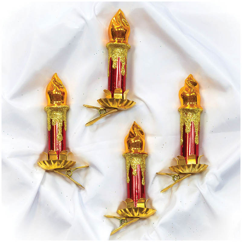 Набор стеклянных елочных украшений "Свечи" 4 фигурки, 8,5см на прищепке, подарочная коробка