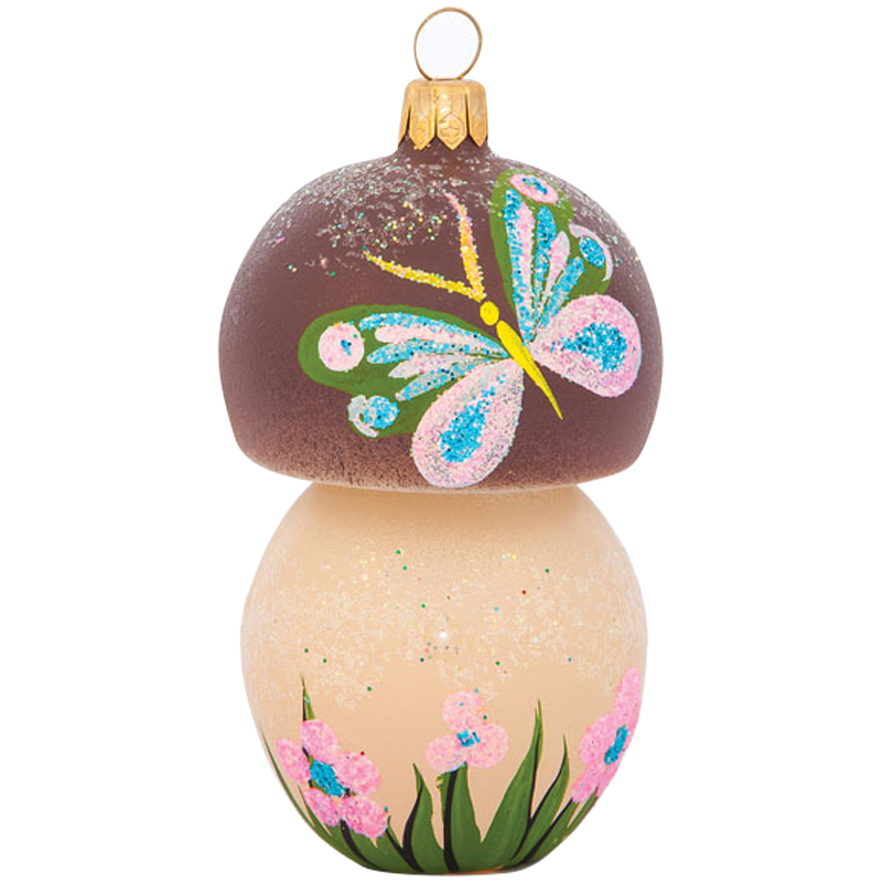 Елочное украшение стеклянное "Гриб-боровик" 8,2см, подарочная упаковка