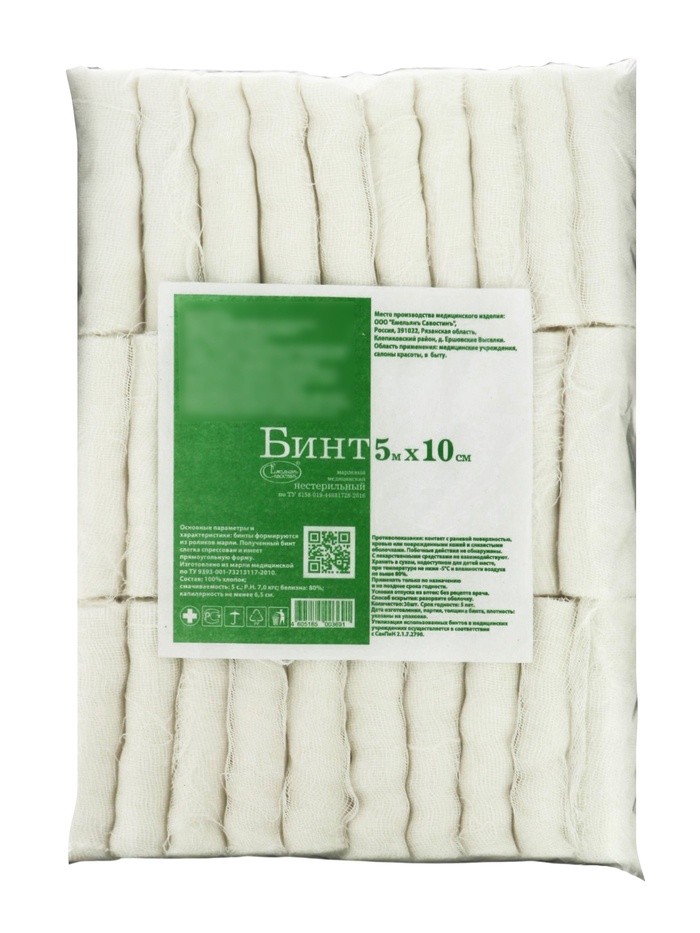 Бинт медицинский стерильный "Емельян савостин", плотность 32 г/кв.м, ТУ, 14 х 700 см