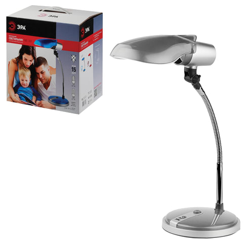 Настольная лампа светильник ЭРА NE-301 на подставке, цоколь Е27, серебро, NE-301-E27-S