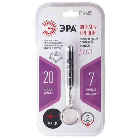 Фонарь-брелок с лазерной указкой ЭРА, 1хLED, 2 режима, 1хLR41 (в комплекте), BB-602