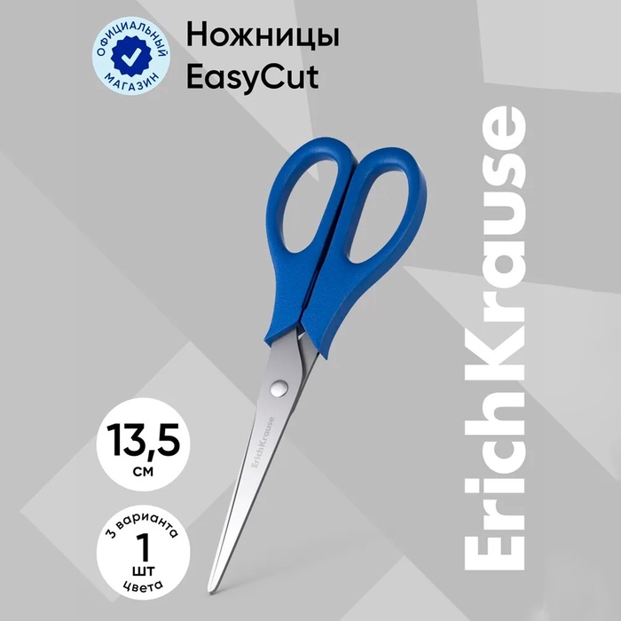 Ножницы 13,5 см ErichKrause "EasyCut", двойная заточка, микс, европодвес
