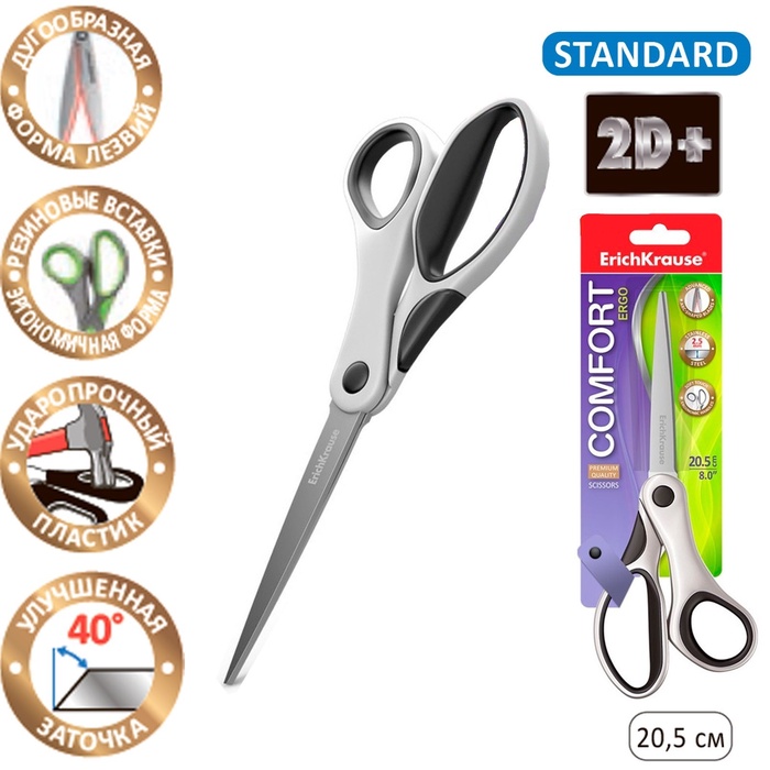 Ножницы ErichKrause Comfort, 20.5 см, серо-белые