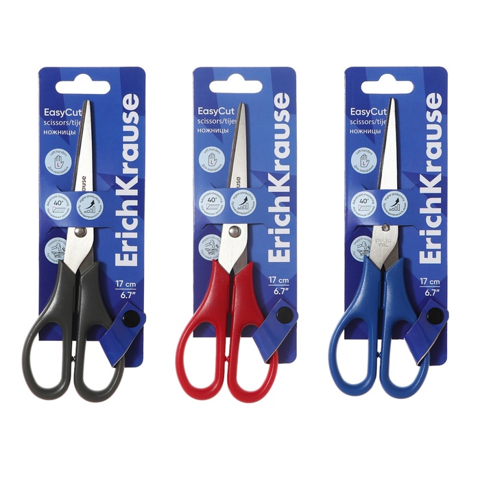 Ножницы 17 см ErichKrause "EasyCut", двойная заточка, микс, европодвес