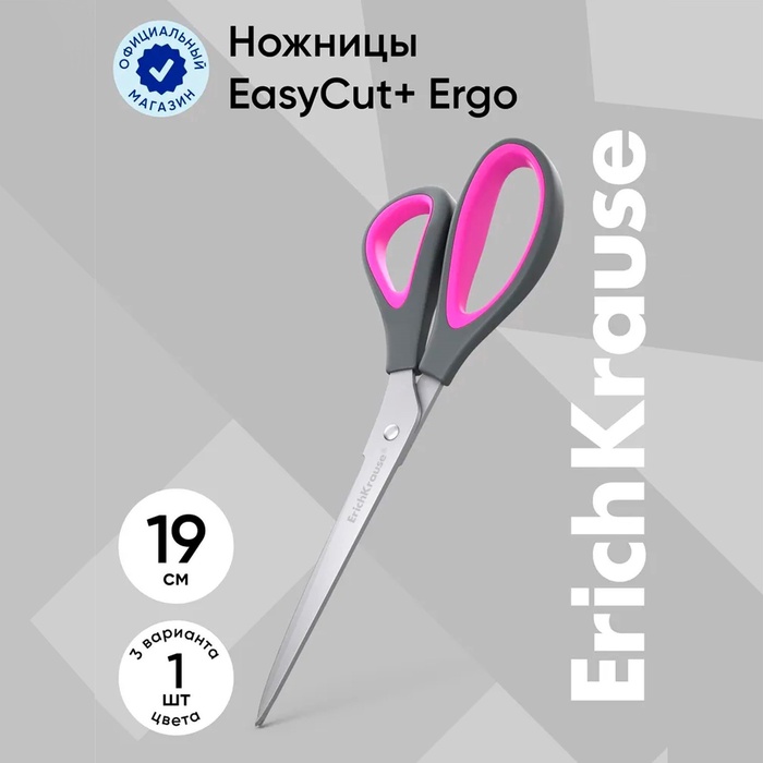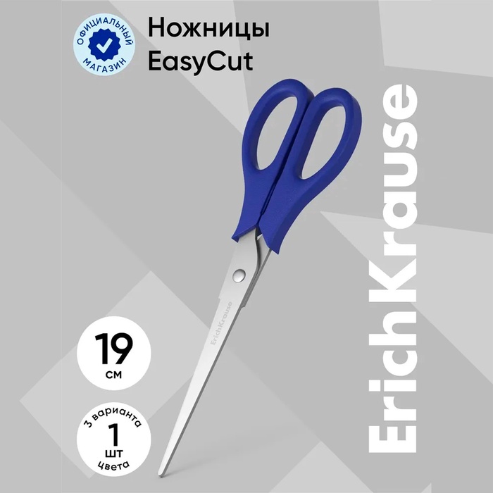 Ножницы ErichKrause EasyCut, 19 см, улучшенная заточка, ударопрочный пластик, блистер, МИКС