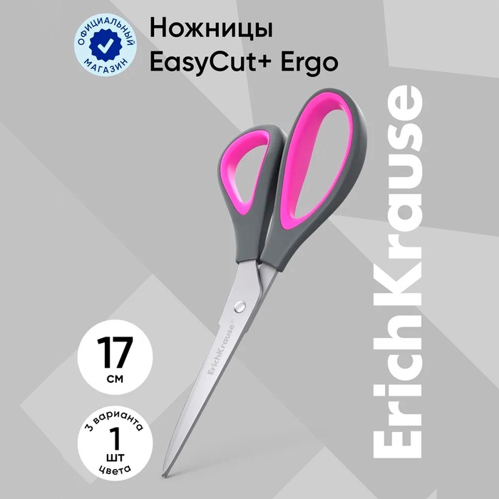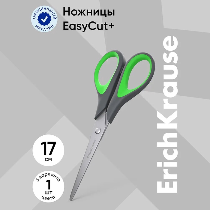 Ножницы ErichKrause EasyCut, 17 см, лезвия из нержавеющей стали, двойная заточка, ударопрочный пластик, МИКС