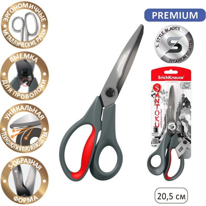 Ножницы 3 в 1, ErichKrause Santoku, 20.5 см, для бумаги, секатор, кусачки, блистер