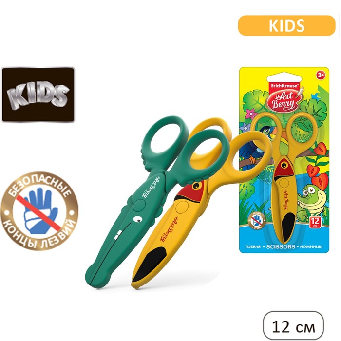 Ножницы детские ErichKrause Artberry Wild Friends, режут только бумагу и картон, пластиковые, в блистере, МИКС