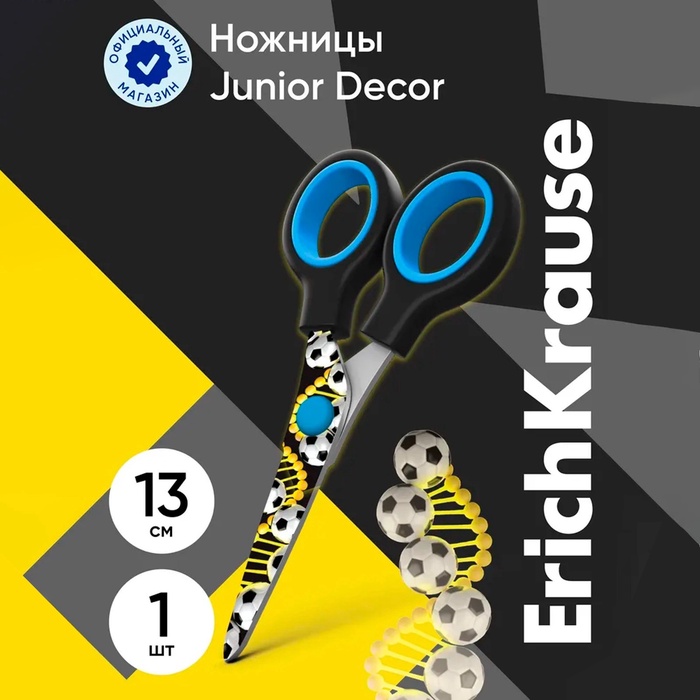 Ножницы детские 13 см ErichKrause Junior Decor "Sport DNA", с принтом на лезвиях, блистер