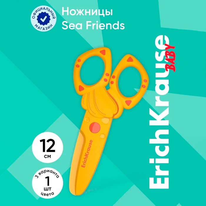 Ножницы детские 12 см, ErichKrause Sea Friends, пластик, МИКС (цена за 1 штуку)
