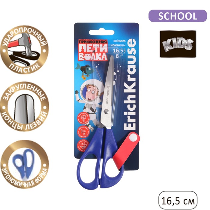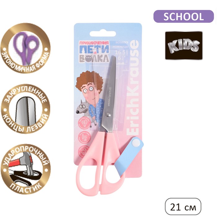 Ножницы детские ErichKrause "Приключения Пети и Волка", 16.5 см, лезвия из нержевеющей стали с закруглёнными концами, ударопрочный пластик, МИКС