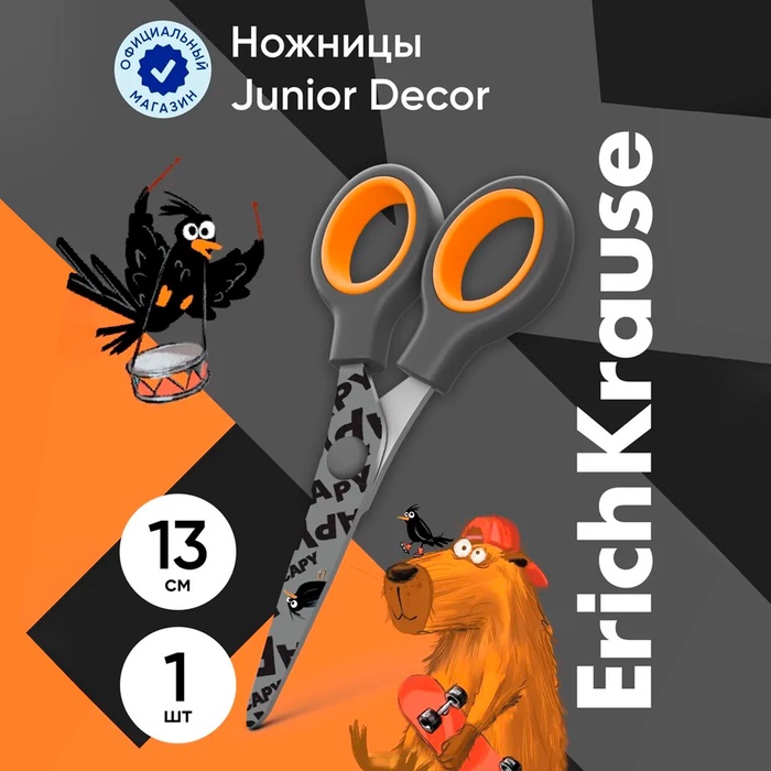 Ножницы детские 13 см ErichKrause "Juinior Decor Happy Capy" с принтом на лезвиях, блистер