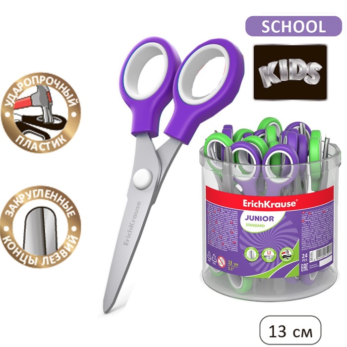 Ножницы детские 13 см, ErichKrause Standard Junior, с закруглёнными концами лезвий, МИКС