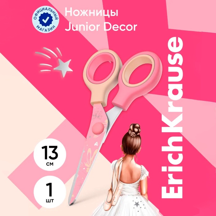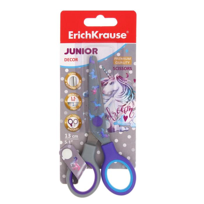 Ножницы детские 13 см ErichKrause "Junior Decor Pointes" с принтом на лезвиях, блистер