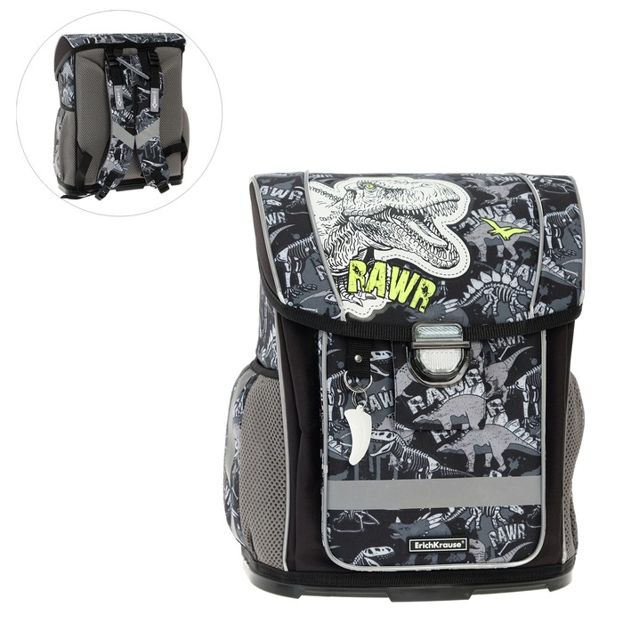 Ранец школьный на замке, 37 х 30 х 16 см, Erich Krause ErgoLine 16L, жёсткое дно, Dinosaur Park 51577
