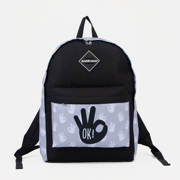 Рюкзак школьный на молнии Erich Krause, наружный карман, цвет серый