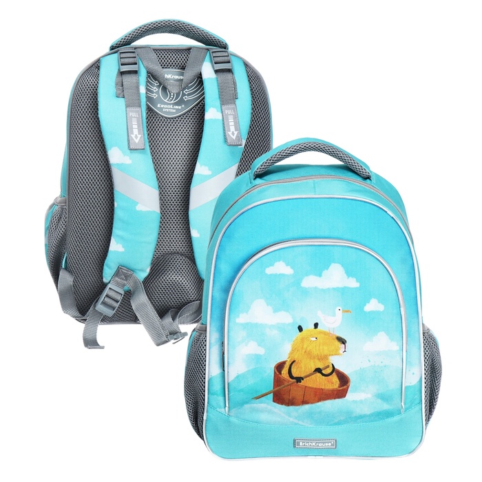 Рюкзак школьный Erich Krause ErgoLine 15L, 39 х 28 х 14 см, эргономичная спинка, Capybara Travel 60097