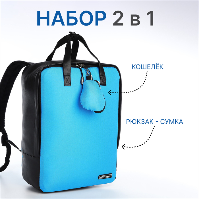 Рюкзак - сумка школьная Erich Krause, кошелёк, цвет голубой