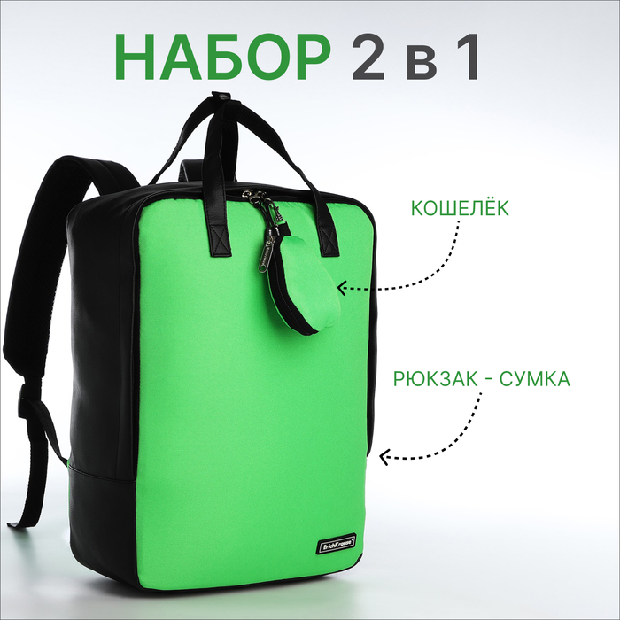 Рюкзак - сумка школьная Erich Krause, кошелёк, цвет зелёный