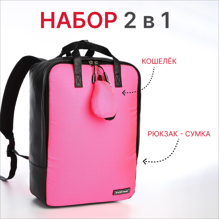 Рюкзак - сумка школьная Erich Krause, кошелёк, цвет розовый
