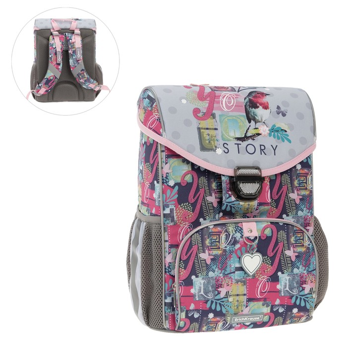 Ранец школьный на замке, 37 х 25 х 14 см, Erich Krause ErgoLine 15L, Bird Story 52588