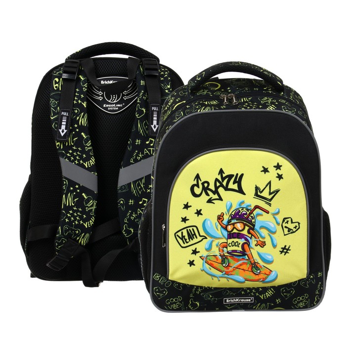 Рюкзак школьный Erich Krause ErgoLine 15L, 39 х 28 х 14 см, эргономичная спинка, Funny Guys 56796