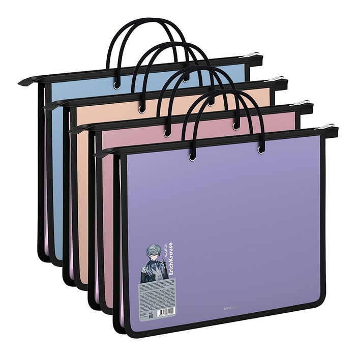 Папка с ручками А4, 330 х 245 х 45 мм, молния сверху, ErichKrause Matt Manga, 600 мкм, микс