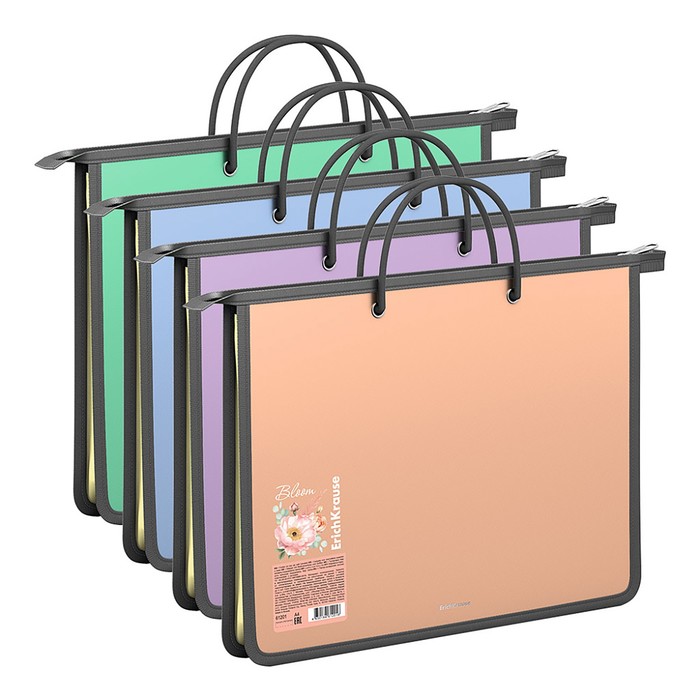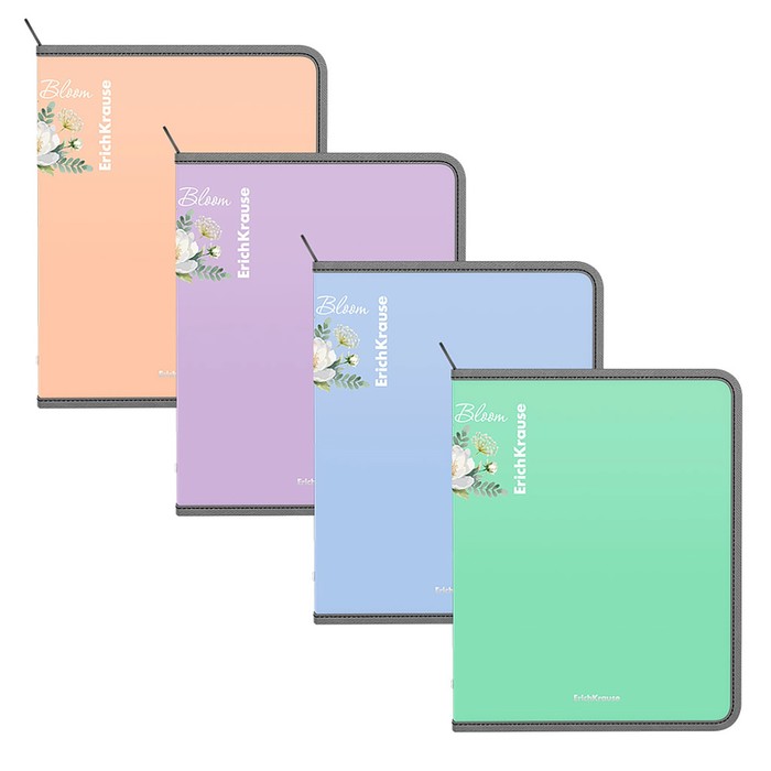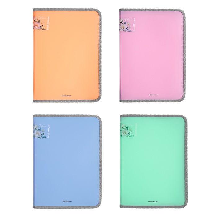 Папка А4+, 330 x 245 х 45 мм, молния сверху, ErichKrause "Matt Pastel Bloom", 600 мкм, тиснение "песок", микс