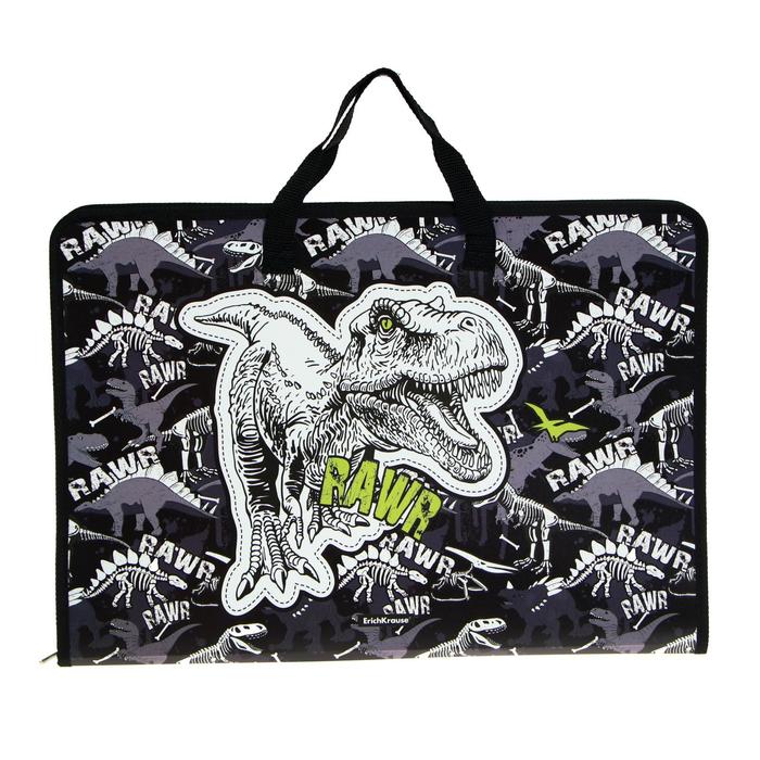 Папка с ручками А3, 30 мм 464 х 316, ErichKrause, Dinosaur Park, пластик, молния вокруг, для мальчика