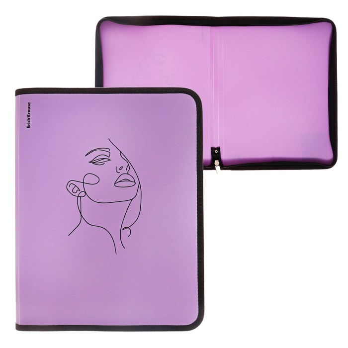 Папка на молнии А4+, 600 мкм, ErichKrause "Manga Faces" 251x330x30мм, пластик, молния вокруг, фиолетовая, микс