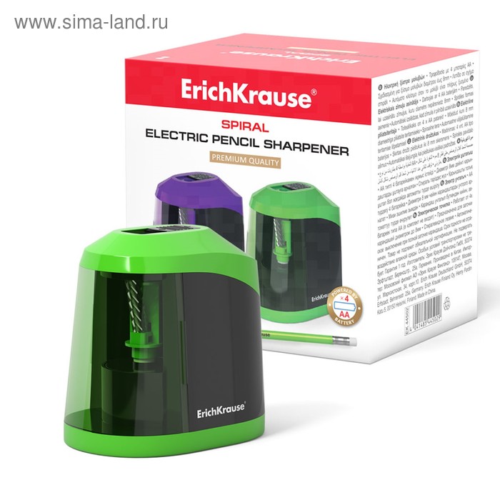 Точилка 1 отверстие ErichKrause Spiral, электрическая, с контейнером, работает от 4-х батареек типа АА, отверстие диаметром 8 мм, микс