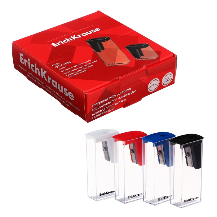 Точилка 1 отверстие ErichKrause "City" Classic, с контейнером, пластиковая, МИКС