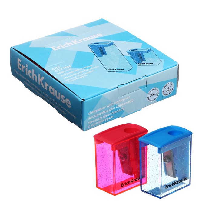 Точилка 1 отверстие ErichKrause "City Mini" Vivid, с контейнером, пластиковая, МИКС