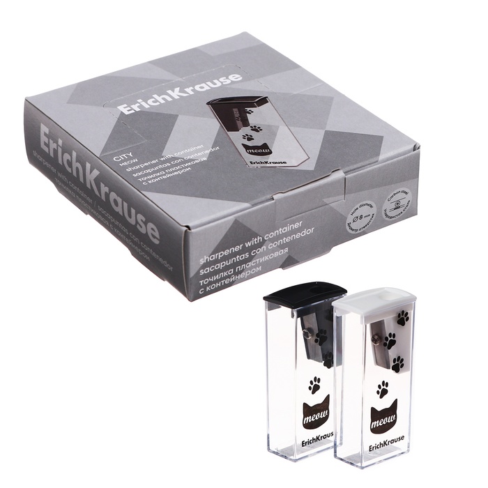Точилка 1 отверстие ErichKrause "City" Meow, с контейнером, пластиковая, МИКС