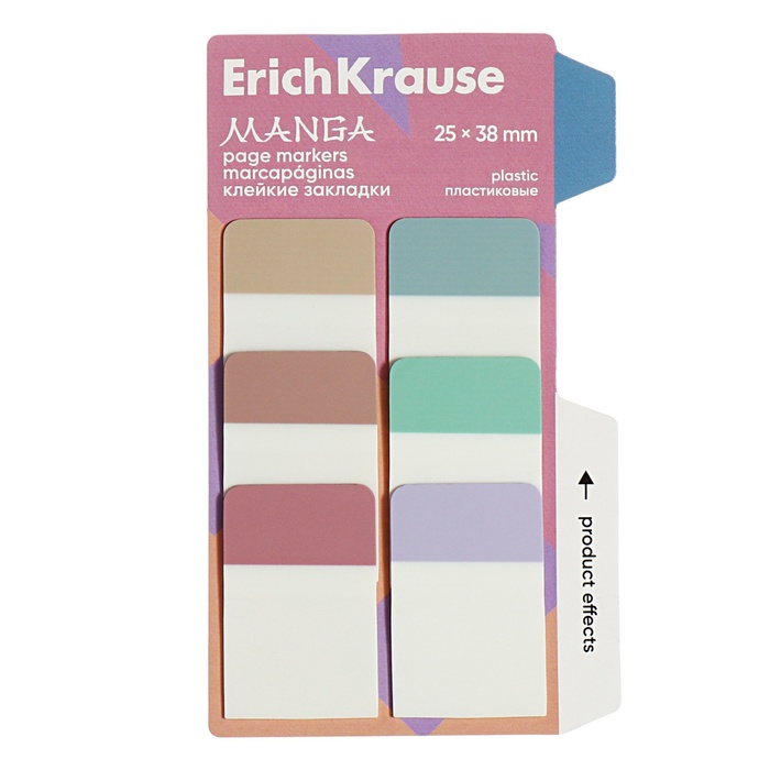 Закладки с клеевым краем пластиковые, 25х38 мм, ErichKrause, "Manga", 60 листов, 6 цветов