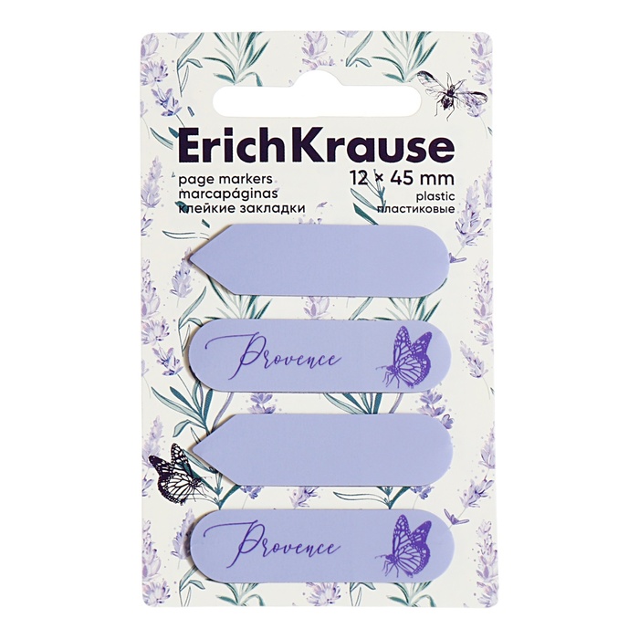 Закладки с клеевым краем пластиковые, 12х45 мм, ErichKrause, "Lavender", 80 листов, сиреневые с принтом