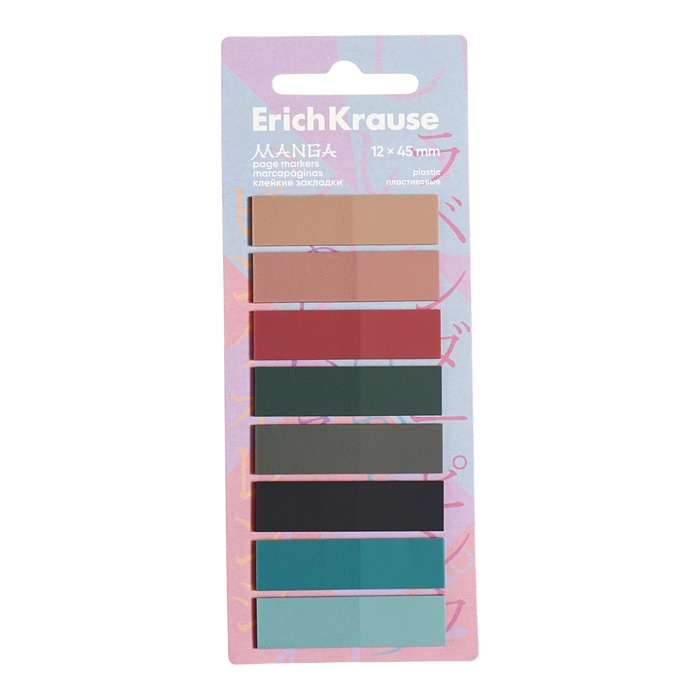 Закладки с клеевым краем 12х45 мм, ErichKrause Manga, 160 листов, 8 цветов, пластиковые