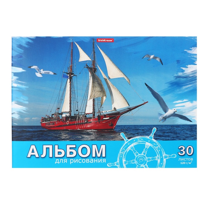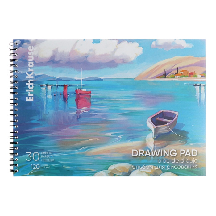 Альбом для рисования А4, 30 листов, блок 120 г/м², на клею, Erich Krause "Морская прогулка", 100% белизна, твердая подложка