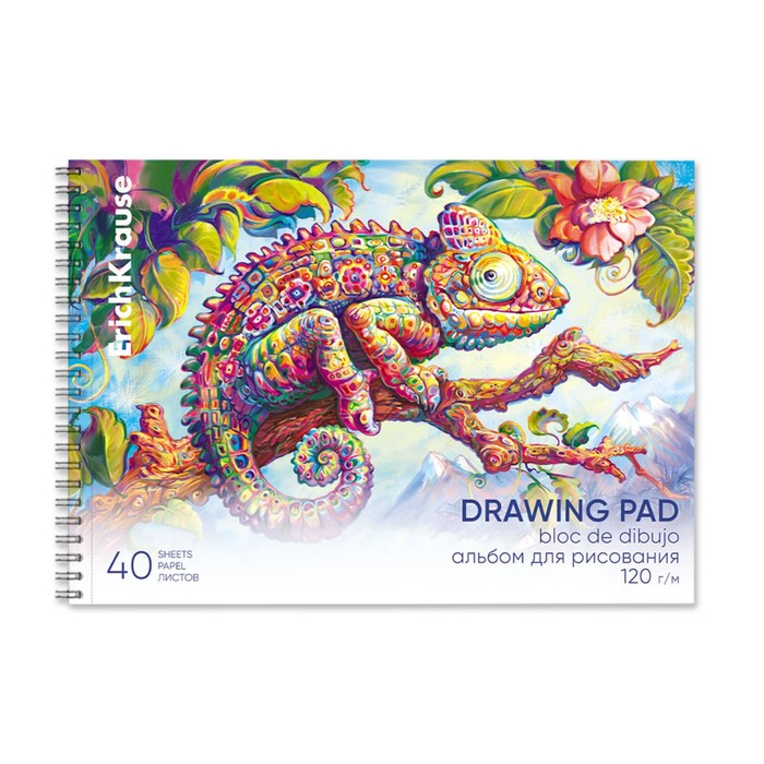 Альбом для рисования А4, 40 листов, блок 120 г/м², на спирали, Erich Krause "Хамелеон", 100% белизна, перфорация на отрыв, твердая подложка