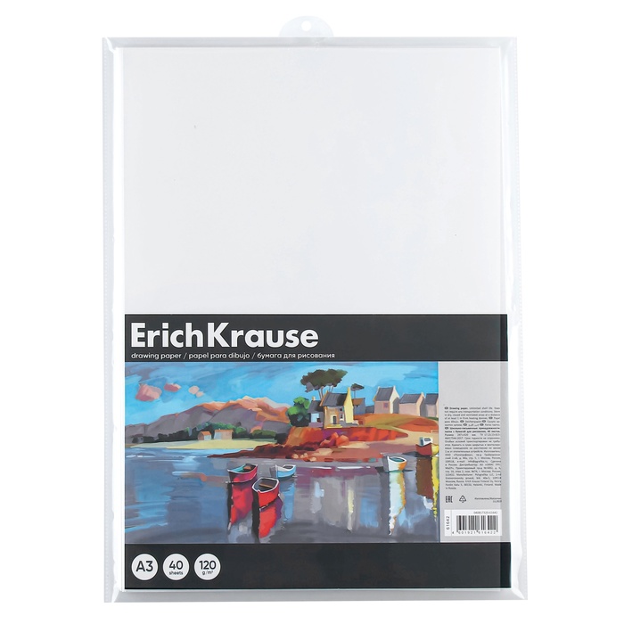 Бумага для рисования А3, 40 листов, блок 120 г/м², ErichKrause "Art Spirit", 100% белизна, в пластиковой папке