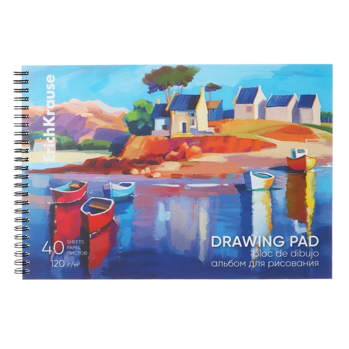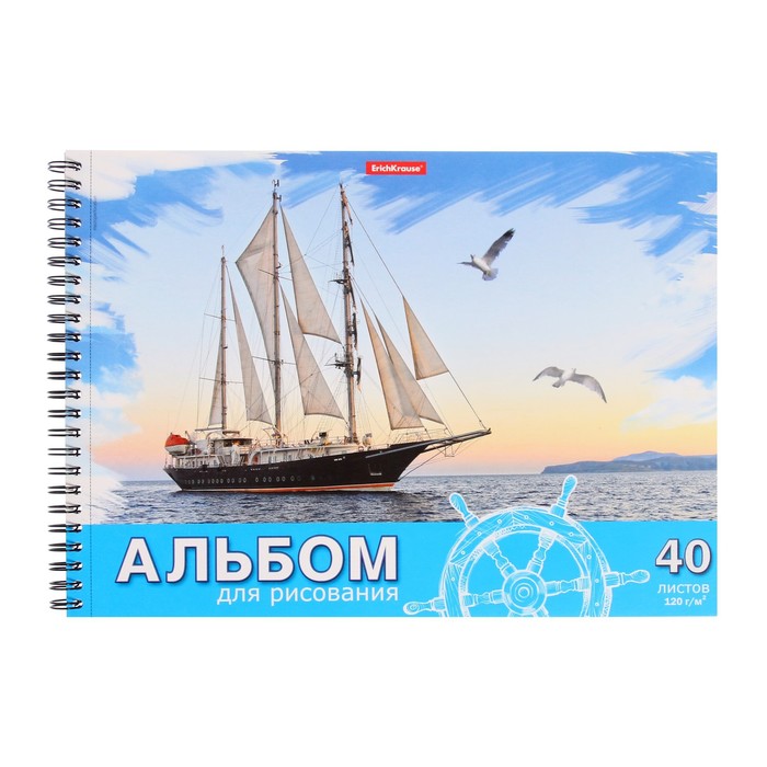 Альбом для рисования А4, 40 листов, блок 120 г/м², на спирали, Erich Krause "Морская прогулка", 100% белизна, перфорация на отрыв, твердая подложка