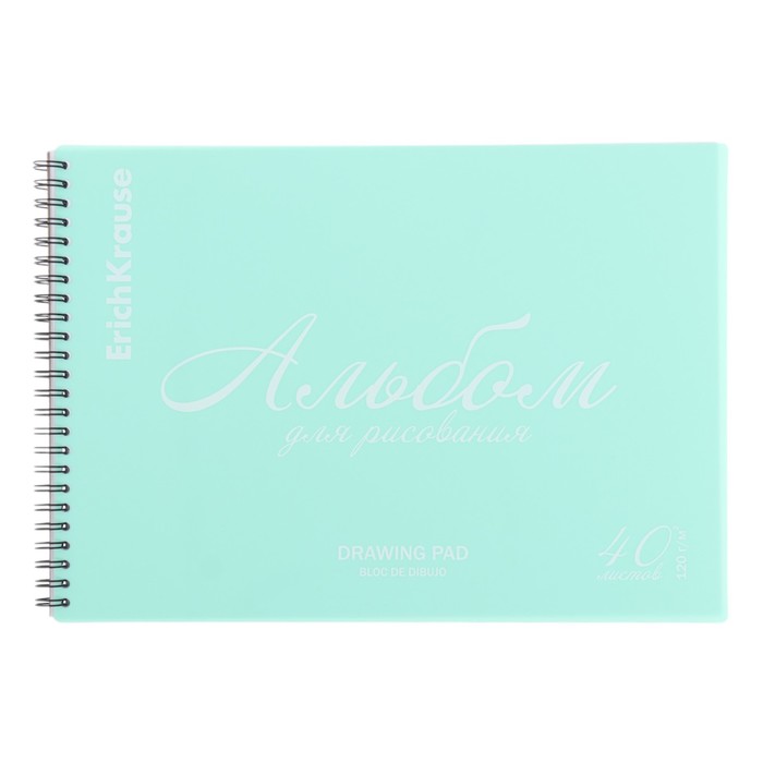 Альбом для рисования А4, 40 листов, блок 120 г/м², на спирали, Erich Krause "Pastel Bloom" зеленый, пластиковая обложка, 100% белизна, твердая подложка