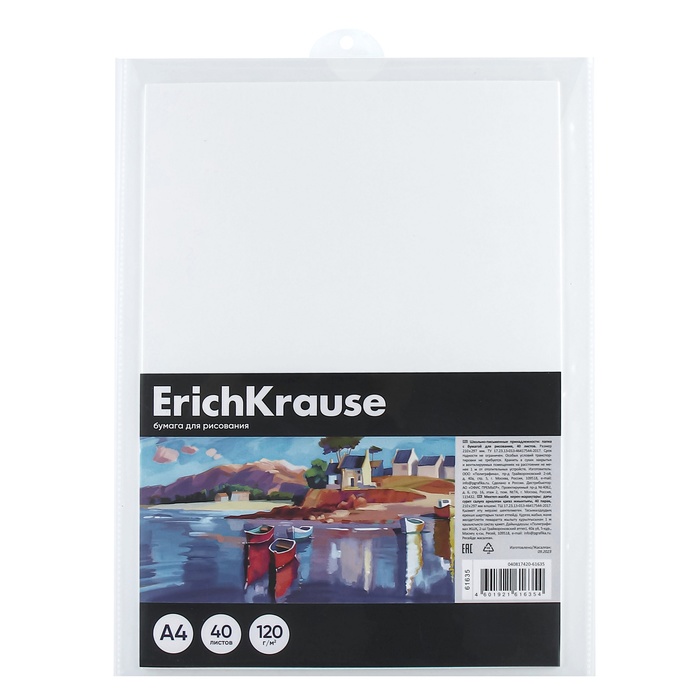 Бумага для рисования А4, 40 листов, блок 120 г/м², ErichKrause "Art Spirit", 100% белизна, в пластиковой папке
