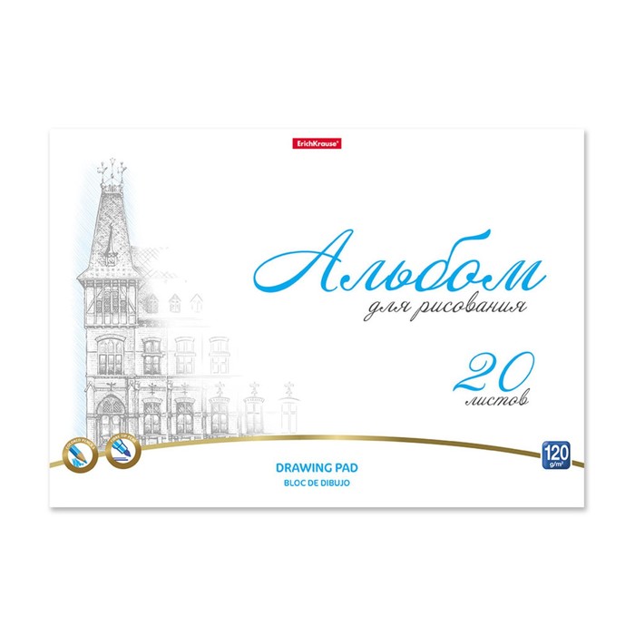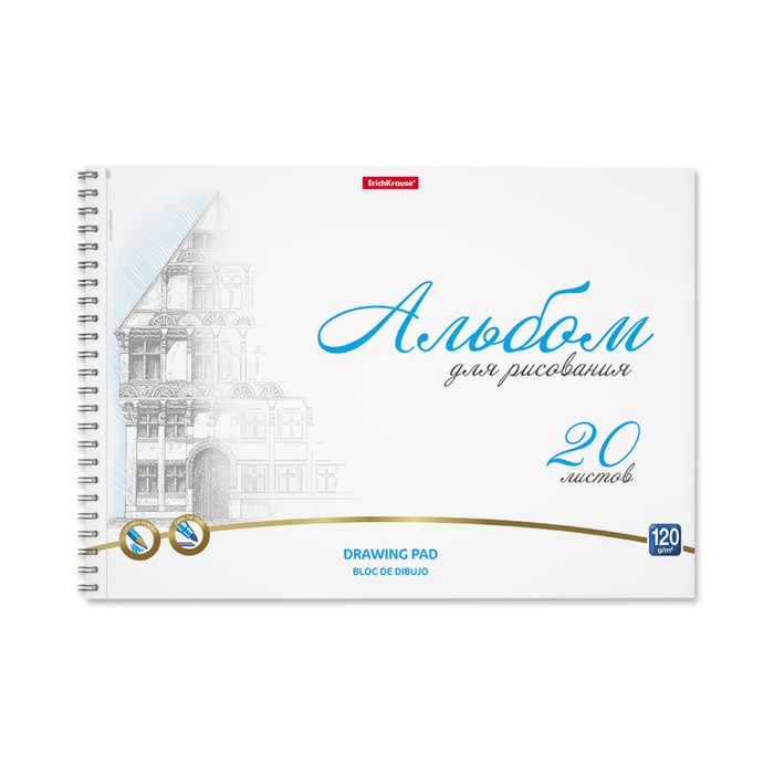 Альбом для рисования А4, 20 листов, блок 120 г/м², на спирали, Erich Krause "Towers", 100% белизна, перфорация на отрыв, твердая подложка